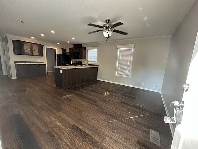 Beautiful Flooring Throughout The rich wood-look flooring adds warmth and durability, making cleaning and maintenance easy.