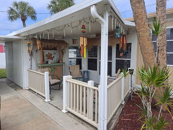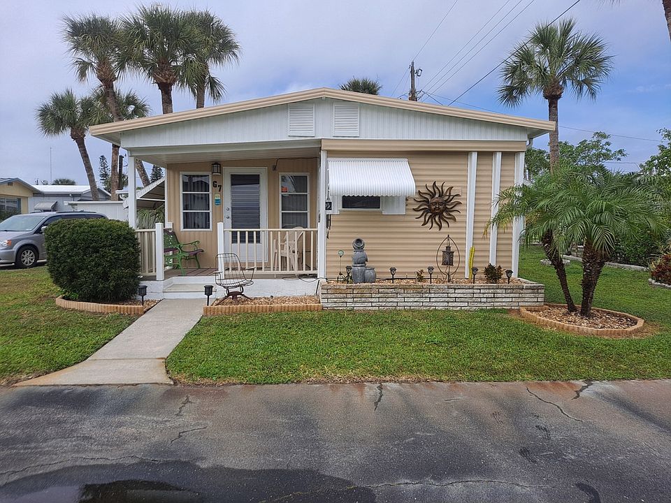 3528 14th St. W Lot G7 Palm Village, Bradenton, Florida 34205 This home is on a rented/leased lot in a 55+ community This 2BR/1.5BA, is set up to move in and make your own. The decor is beach/tiki inside and out. It comes with an enclosed side-set lanai, a front and rear covered porch/patio. It also has a separate backyard uncovered patio that is surrounded with lattice to provide additional privacy. There are 2 large sheds and 1 small utility shed. The large sheds are sizable; one is 16'x18', the other is 8'x16' There is enough driveway to park 2 cars. The home comes partially furnished and turnkey. It is cooled with a central AC for the main home and an added window unit to keep the lanai cool. The washer/dryer hookups are in one of the sheds. The washer/dryer are both new and are included in the sale. The home flooring is carpet and laminate in all the right places. There is also custom paint throughout. There are multiple improvements that have been made to this home including New Subfloor and laminent in the kitchen and dining areas. It has new carpet in the addition area. There is documented annual AC maintenance on the central unit. Also, annual pest control servicing. The lanai is enclosed with glass windows. It has carpet, a ceiling fan, and vertical blinds. The eat-in kitchen has upgraded countertops, sink fixture, fresh custom paint, and a pantry. It comes with a stove, microwave, and refrigerator ready to use. There is a separate dining area adjacent to the kitchen and living room The living room has carpet and custom paint. The full bath has custom paint and comes with a walk-in shower and a single sink vanity. The main bedroom has carpet, a ceiling fan and the attached 1/2 bath. The half bath is separated from the bedroom with a folding door and includes a single sink vanity. Bedroom 2 has carpet, a ceiling fan, and a closet. The lot rent is $559 and includes a clubhouse and a pool. Trask pickup and Lawn mowing is also included. A small price to pay to live in Paradise! Palm Village is in the heart of Bradenton, Palm Village boasts an ideal location. Residents enjoy spending their time at nearby attractions including River Run Golf Links, the Red Barn, the River Walk, downtown Bradenton, and the Pittsburgh Pirates Spring Training field. Conveniently situated near several freshwater lakes and rivers, our angler residents enjoy being close to both fresh and saltwater fishing. Not to mention the numerous restaurants and retail choices that surround our park. Discover small-town neighborhood living in a 55+ community close to all the metropolitan culture, attractions, and excitement of coastal Florida. Florida MH Sales, LLC cannot guarantee or warrant the accuracy of this information, measurements, or condition of any property. The measurements are approximate, and the lot rent is subject to change