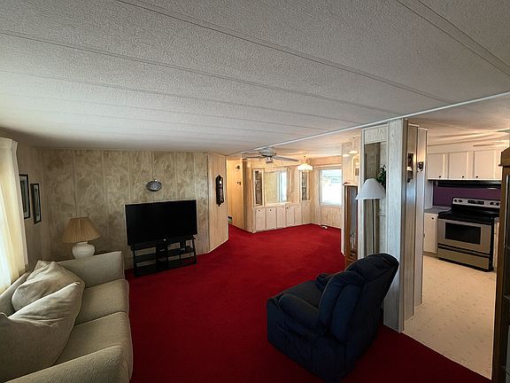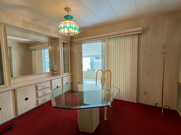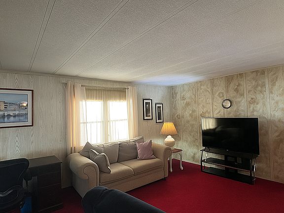 This charming time capsule hosts an abundance of space and an open concept floorplan. Boasting a kitchen bar top that overlooks the main living room, your guests will feel included at all angles! Or, are you are looking for your home away from home? With the fan-favorite-Florida room located at the front of the home, this additional living space is complimentary to all of the built in cabinetry in the dining room, you don't have to search for extra space for the fine China-ware. Both bedrooms are spacious enough to fit a complete bedroom set! The primary bedroom in this home features a walk-in shower and has great flow to the rest of the room. The exterior shed houses the laundry area complete with washer and dryer. Finally available in the sought after Sun Communities, this is your opportunity to own your little piece of paradise, too! See you soon!