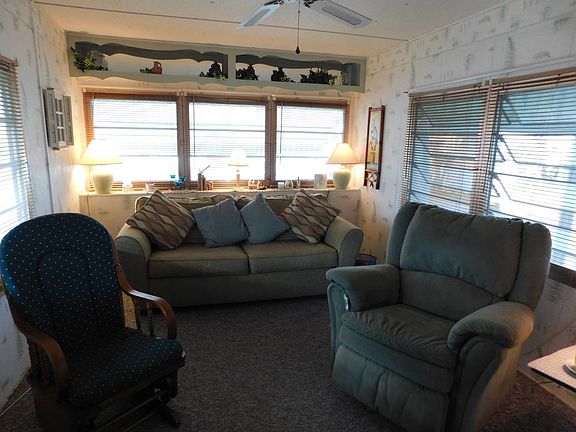 *****CALL FOR AN APPOINTMENT TODAY*****This home is a turnkey furnished one bedroom one bath with a huge florida room and inside laundry room. Living Room-lots of windows and has a sleeper sofa, lamps, rocker, TV and table, blinds and is carpeted and has a ceiling fan for comfort. The wall AC unit is located in this room and cools this unit right down. Kitchen- has a refrigerator, flat top stove, hood, microwave, tile and formica countertops and lots of cabinets. Hallway- has pantry and linen closet. Bathroom-Comfort height commode, tub/shower combo, vanity and cabinets, large medicine cabinet. Bedroom- will accommodate a king or queen. Has 4 closets so plenty of storage space here. There is a dresser with 6 drawers in one of the closets and a built-in dresser with 8 drawers. Carpetted and ceiling fan for comfort. Enclosed Florida Room has vinyl windows and screens. Has a table and 4 chairs, sofa, recliner, throw rug, table and lamp, TV on wicker stand and a room divider and still has room to spare. Laundry Room/Workshop- Has a washer and dryer and storage with shelves. There is also a hallway to the back door to go out to the patio or clothes line. There is also an attached shed at the end of the driveway with double door in the back so you can pull the golf cart right in and lock it up. The back patio is large and great for entertaining. Has a very large driveway and a spot for your golf cart. This unit has hurricane shutters on the West, South North and front side window. This is located in a 55+ pet friendly community just 12 miles from the Gulf of Mexico. There is a pool and spa, clubhouse, play shuffleboard or darts or try your luck at bingo, This is all about location and this is located in the heart of Bradenton. Lots of nearby attractions, dining, shopping, the beach and so much more. You will love it here and the price is right so this will not last long!!! ***All listing information is deemed reliable but not guaranteed and should be independently verified through personal inspection by appropriate professions. Lighthouse Mobile Home, LLC cannot guarantee or warrant the accuracy of this information or condition of this property. The buyer assumes full responsibility for obtaining all current rates of lot rent, fees, or pass-on costs associated with the community, park or home from the community/park manager. Lighthouse Mobile Home LLC is not responsible for quoting of said fee .