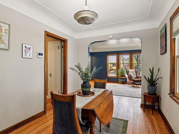 Charming South Mpls 1 1/2 story with classic style and all the features – hardwood floors and archways with many updates and improvements. The spacious front living room has plenty of windows for daylight. Separate formal dining room. Cute kitchen provides workable cupboard and cabinet space. 2 good sized bedrooms on the main floor with an updated 3/4 bath between. Upstairs you’ll find an additional bedroom with walk in closet and a great office space. Lower level is not counted as finished space, just needs a ceiling! Tons of storage, laundry, 1/4 bath, exercise & work / project space. Entertain from your large 3 season porch or the fully fenced backyard with patio. Walk/bike to restaurants, bars, schools and parks! New furnace and AC ’22. Home pre-inspected and warranty provided.