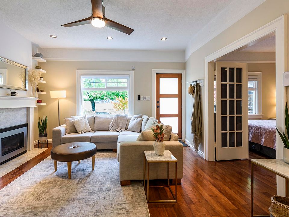 Excellent opportunity to own this wonderful 7 bed & 3 bath family home that has been lovingly & thoughtfully renovated over the years. 4 bdrms located on upper floors incl. primary bedroom w/ensuite. The spacious kitchen boasts stone countertops & stainless steel appliances. Nothing to do but move in and enjoy the summer in the beautifully landscaped (fenced) yard. Back deck is fully equipped w/a gas hook up for your BBQ &/or fire pit & partially covered to enjoy throughout the year. Downstairs is a 3 bedroom mortgage helper! 2 car garage. A great investment as this home falls within the Transit Oriented Development zoning. Centrally located w/ easy access to Hwy 1, walk to schools, shops, restaurants, parks and 15 mins to downtown. Showings by appt.
