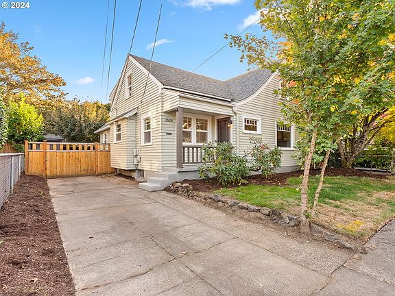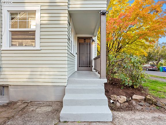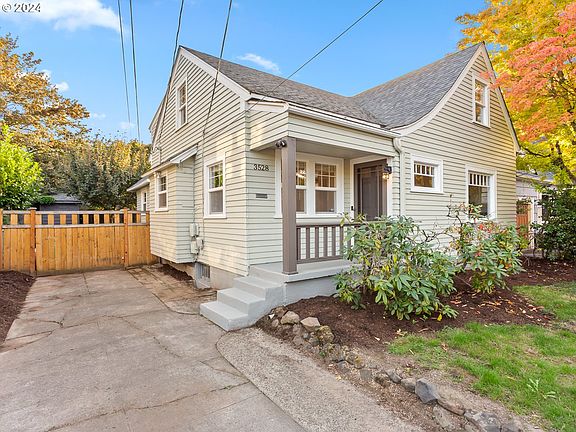 OPEN HOUSE Sunday 27, 1-4 pm. Your COZY ENGLISH COTTAGE awaits! Glorious natural light streams through generous windows in this magical example of slope-roofed English architecture. Inside, be wowed by the elegant archway design between the liroom and formal dining wood ceiling that exits thru French doors to the level backyard. The second main level bedroom with starburst chandelier also accesses the back yard. Both rooms open to the wide deck that invites outdoor entertaining and play. Back inside, the kitchen is roomy and joins the convenient breakfast nook with built-in breakfront for plenty of mealtime or bookshelf storage. Upstairs find a massive flex space/ Primary bedroom with full-bath and walk-in closet. The 20's style bath shows it's pride with period fixtures and clawfoot tub. Long driveway with big privacy gate allows for extended RV parking. The laundry room is downstairs thru the kitchen (light switch is behind the kitchen landing door) and is roomy with plenty of storage space. New stairway and upper level carpeting; new interior and exterior paint! (Fire in the fireplace photo is photoshopped in; room staged as office was third bedroom, no doors now.) [Home Energy Score = 1. HES Report at https://rpt.greenbuildingregistry.com/hes/OR10233622]