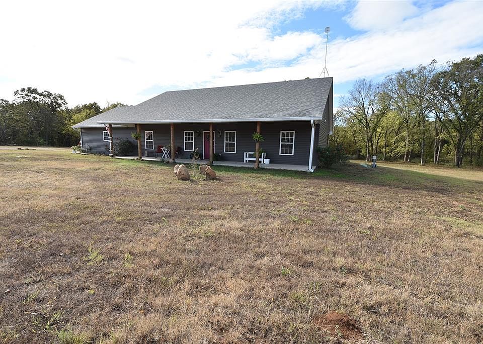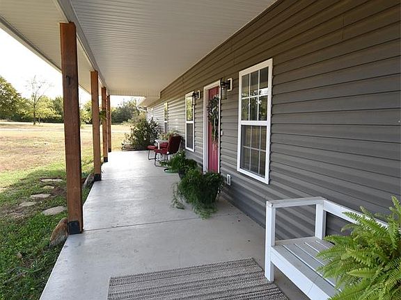 This one has it all! Spacious barndominium style property in a beautiful rural setting. Home has 3 bedrooms, 2 bathrooms and sits on 20 acres mol with a pond. Front and back of the property both have sprawling covered porches for your quiet time enjoyment. The interior of the home has an open floor plan for the living, dining and kitchen spaces. Kitchen has white cabinets, butcher block counter tops, stainless appliances and an island. With so much natural light, recessed lighting and French doors that open up to the covered back porch this space is bright and airy. Primary bedroom is large with big walk in closet and en-suite bathroom. Bathroom has tub/shower combination and double sinks. Secondary bathroom has a lovely tiled step in shower located between the other two nice sized bedrooms on the opposite side of the home. Just off the kitchen is a large pantry, laundry area and a convenient pet wash station. With an easy pull out step, your furry friends will love their personal spa area! The fully insulated double car garage is a versatile flex space. Currently it is finished out as living space with a separate mini-split unit. Inside this area is large walk in storm shelter. This 900 sq. ft. mol could be used as a garage, 4th bedroom, workshop space and more. The 20 acres mol includes a mix of cleared and wooded areas with walking/driving trails. The pond is easily accessed from the back yard. Property is mostly accessible via blacktop roads with minimal dirt road driving. Grab your favorite Realtor and schedule a showing today!