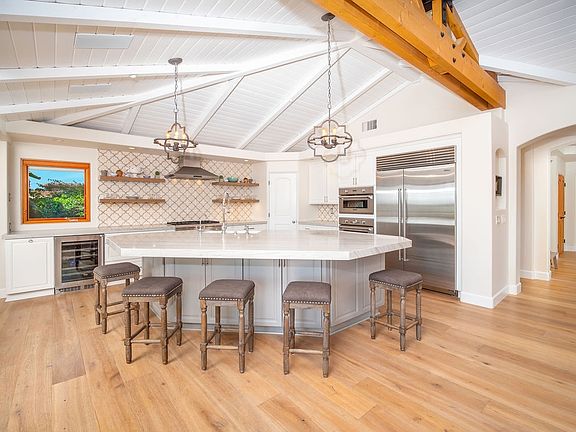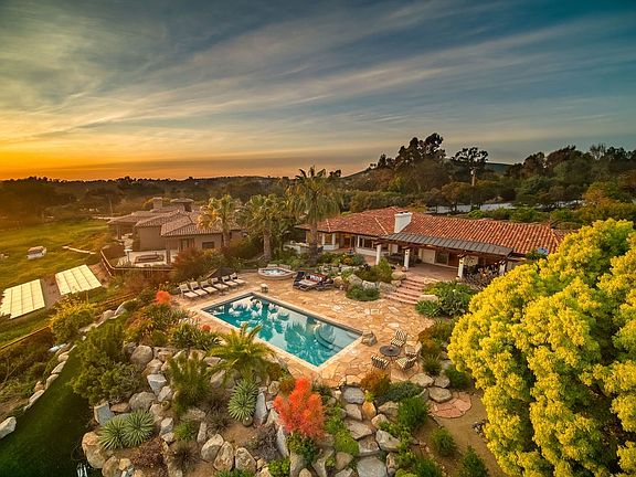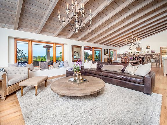 Single level masterpiece with VIEWS perched high in an exclusive gated community known for its tree lined streets of custom estates. Enjoy this sophisticated chic oasis of ultimate luxury handcrafted and presenting wide plank French Oak flooring, spa master suite, chef's kitchen, designer lighting, indoor/outdoor living within a sun drenched home with southern views through custom windows & doors, sparkling pool/spa, copper roofed loggia, Lynx BBQ, new sport court, bocce, and spectacular landscaping.