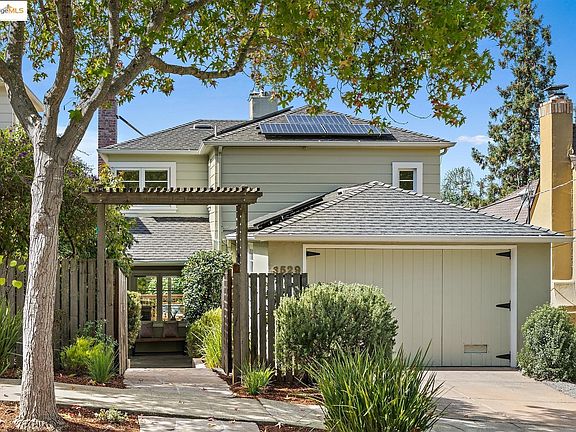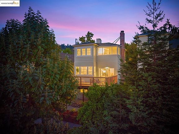 She is a tantalizing dish located on perhaps the most charming tree-lined road in Redwood Heights, just five blocks from Redwood Heights Elementary School and the Rec Center. The gated, landscaped front yard, featuring a built-in bench and covered porch, offers a peaceful welcome. The two-level living room, with its hardwood floors and fireplace flanked by bookcases, opens through oversized patio doors to a generous west-facing deck with slices of Bay view, irresistibly inviting for indoor-outdoor living. The updated kitchen, with windows framing sunset skies, features a farmhouse sink, gas cooktop, ample storage, and a seamless connection to the dining room. The primary bedroom includes a sunroom with Bay views, providing a flexible and light-filled retreat. For the past 18 years, Jim and Ute have cherished countless neighborhood moments here, hiding Easter eggs for the Jordan Road kids, sipping morning coffee and enjoying croissants while chatting on the street, watching autumn leaves pile up for children to leap into, joining the “walking school bus” to Redwood Heights Elementary, and celebrating festive Halloweens filled with trick-or-treaters. The afternoon sun warms this soulful 1938 home, a graceful blend of vintage character and pride of ownership.