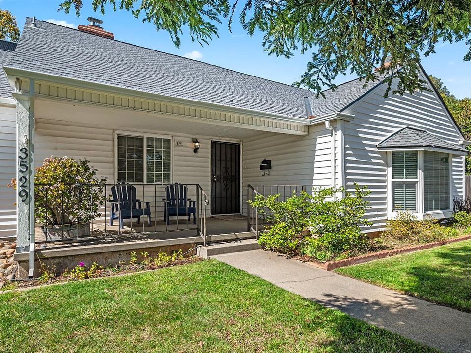 Welcome to this meticulously maintained home in a desirable neighborhood that boasts great curb appeal and timeless charm. Step inside and admire the vaulted open-beamed ceiling, statement fireplace, and hardwood flooring creating an inviting ambiance. The living room is bathed in natural light through a large sliding door that opens to the backyard. The dropped family room is perfect for cozy gatherings featuring a brick fireplace, built in wooden cabinetry and shelving that provide ample storage and a large bay window allows natural light to pour in. The renovated kitchen features a spacious island with neutral-toned tiles, a built-in sink, and wooden cabinetry and most appliances less than a year old. Upstairs, the primary bedroom showcases a vaulted ceiling and an ensuite bath with a glass-enclosed walk-in shower. Step outside into the private backyard, which offers plenty of space for various activities and includes a patio and shaded seating area, ideal for entertaining, plenty of grass, space for a small garden. Theres even a gate to walk to the nearby high school! A detached two-car drive thru garage provides ample storage and parking/options for a hobbyist. But wait, it also comes with a 1 year old roof and new HVAC . All this just 3 minutes from Arcade Square + dining!