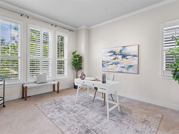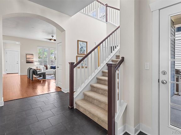 Located in the vibrant and growing Central Park neighborhood, this elegant home is crafted by David Weekley Homes—one of Colorado’s top builders, known for their award-winning designs and quality construction. Starting with a striking brick façade, arched doorways, and a welcoming covered porch, the home showcases unique curb appeal. Inside, vaulted ceilings and an open, airy layout create a sense of spaciousness and comfort that today’s buyers crave. Upon entry, you're greeted by a private office and beautiful arched partitions that add architectural charm while subtly separating the main living space. The open-concept kitchen is a chef’s dream, featuring a large island, granite slab countertops, a stylish tile backsplash, and cutting-edge appliances. Warm hardwood floors flow seamlessly through the kitchen, great room, and dining area, tying the space together. Upstairs, you’ll find a versatile loft, three spacious bedrooms, and two full bathrooms, including a relaxing primary suite with walk-in closets and a luxurious five-piece bathroom. The laundry room is also conveniently located on the upper level. The professionally finished basement adds even more living space, including a large recreation area, a generous guest room, a bonus room, a full bathroom, and ample storage. Step outside to a low-maintenance backyard with a concrete patio—perfect for relaxing or enjoying Colorado outdoors. Ideally located across from green space in Central Park North and just minutes from neighborhood shops, Sam's club, parks, pools, the Stanley Marketplace, and the Anschutz Medical Campus.