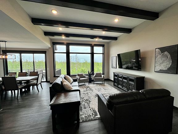 This home has been carefully designed so the main level includes very open spaces, high ceilings, and tons of windows offering scenic views. The main level also includes the primary suite, 2nd bedroom, 3/4 bathroom and laundry. The finished walkout lower level has a huge family room, 3 additional bedrooms and 2 more 3/4 bathrooms. Enjoy spending time on the maintenance free deck that overlooks the private backyard.