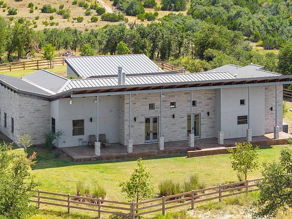 Welcome to 353 Agarita Way, an architectural masterpiece on 5.87 acres in the exclusive Preserve at Walnut Springs. Set within a 2,000-acre Hill Country sanctuary, this private community blends luxury, nature, and outdoor adventure—from horseback riding on private trails to relaxing by spring-fed swimming holes. The custom-built 2,640± sq ft modern estate showcases bold contemporary lines and warm natural materials, creating a striking yet inviting retreat. Designed to complement its surroundings, the home’s sleek façade and stone accents open to airy interiors featuring beamed ceilings, expansive windows, and refined finishes. The open-concept living, dining, and kitchen area features granite countertops, stainless steel appliances, and double ovens, centered around a dramatic stone fireplace that extends into a serene courtyard with an outdoor fireplace, raised beds, and lush landscaping—perfect for entertaining or quiet mornings. The primary suite is a sanctuary with vaulted ceilings, stunning views, and a spa-like bath featuring a freestanding tub, glass shower, and custom granite vanity. Two private guest suites—each with an en-suite bath—offer boutique comfort, while a media room, home office, and art studio provide versatile living spaces. Sustainability meets sophistication with solar panels, a well, and an 8,000-gallon rainwater system featuring purification, as well as an oversized three-car garage and a climate-controlled workshop. Life at The Preserve at Walnut Springs offers more than a home—it’s a lifestyle. With 1,500 acres of protected open space, residents enjoy a community-wide ag exemption, 22 miles of private trails, two resort-style pools, tennis courts, stocked fishing ponds, a spring-fed swimming hole, and an equestrian center with stalls and arena—all just eight miles from Johnson City and within easy reach of Austin and San Antonio.