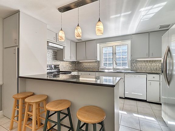 Wonderful opportunity in desirable Amherst! This oversized Royal Barry Wills Cape home sits on a large, level, wooded lot and is set back from the road. Accessed from a long driveway, you have lots of privacy. You have 4 BRs, 2 full BAs, a 3/4 BA and a half bath. There are a total of 5 fireplaces. Large breezeway with fireplace and half-bath bridges the 2 car garage and the kitchen area and would make a great family room or den. Lovely kitchen with granite counters, updated appliances, and lovely light gray cabinets and tin backsplash. A generous dining room is just off the kitchen. Massive front-to-back living room with bay window and brick wood-burning fireplace. A small room with built-in bookshelves and desk area - perfect for a home office - rounds out the first floor. Upstairs you have 4 large bedrooms, including a primary with a nice en suite bath, good closet space, and even a fireplace. The lower level is partially finished, with a fireplaced family room and other finished rooms, as well as a bath and an unfinished storage/utility/laundry area. FHA heat with Central A/C. This large home is ready for your custom touches that will take it to the next level.
