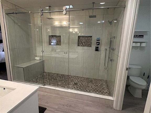 Stylish denModern loft vibeOpen layoutSpacious bedroomsCustom glass shower doorsPrivate balconiesFully upgraded bathrooms