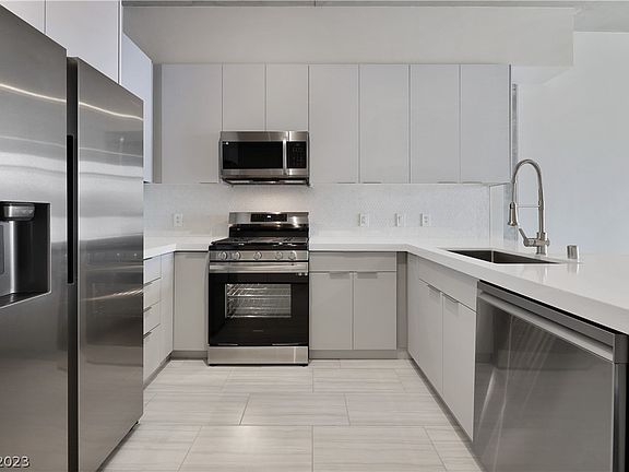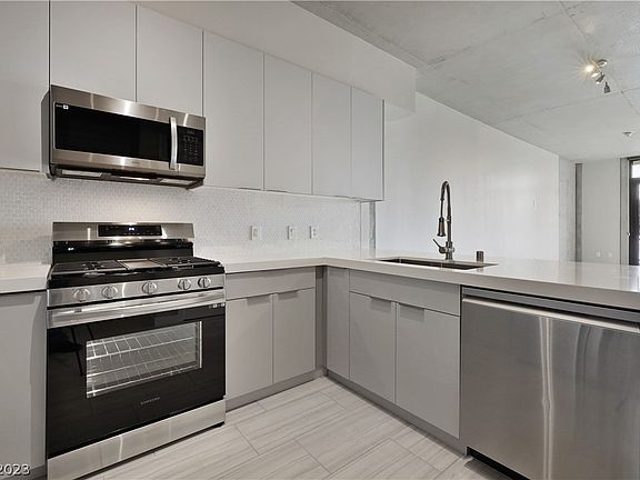 Special Incentive - 6 months PREPAID HOA fees w/ contract signed by 2/28/23. One of the last remaining LV Strip view homes at Juhl. Spacious open loft style 1 bed, 1 bath, 10 ft ceilings, Nest Learning Thermostat, plenty of natural light and private balcony. Porcelain tile throughout. Features a chef’s kitchen complete with new Samsung stainless appliances and gas cooktop, sparkling new white quartz counters, new contemporary back splash, sleek cabinetry w/ breakfast bar overlooking large dining area. Large open bedroom w/ ensuite. Ensuite features separate shower and garden tub, private WC, new quartz double vanity, huge walkin closet, & stackable Samsung washer/dryer. Amenities include resort pool, outdoor theater, outdoor kitchen with 2 gas grills, cabanas, 2 story fitness center, dedicated concierge, Amazon and MINT dry cleaning lockers, EV charging, enclosed dog walk, assigned covered & gated parking. Juhl promenade w/ retail, restaurants at street level. Located in Downtown LV.