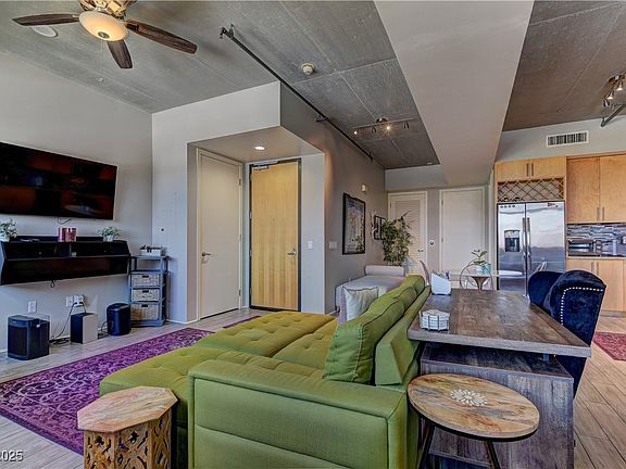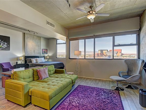 Location, location, location! Welcome to your fully furnished efficiency studio in the heart of Downtown Las Vegas. Walking distance to Fremont Street, Arts District, restaurants, and the Juhl promenade. Features include a California king bed, large sofa for guests, granite countertops, stainless steel appliances, and wood-like tile flooring for easy care. Smart TV with CenturyLink internet included. Community amenities offer resort-style living with pool and cabanas, outdoor kitchen, 2-story fitness center, pet walk, outdoor movie theater, vino deck with Strip views, concierge, and more.