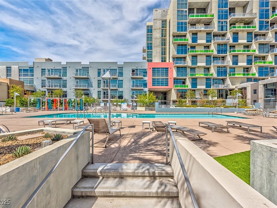 Large, open floorplan with tile throughout this 2 bedroom/2 bedroom condo. The Kitchen features granite countertops and stainless-steel appliances with breakfast bar open to great room with balcony. High ceilings with floor-to-ceiling windows maximize height, light and the amazing strip and sunset views. Juhl offers Ground-level shops & eateries, short distance to nightlife, public transportation. Close to the Art District, Medical District, Smith Center, Las Vegas Academy of Arts and more. Showings Start June 2nd.