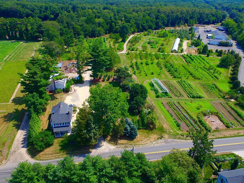 This renovated farm house sits at the front of a beautiful farm land with multiple buildings that include an office, a market and warehousing.