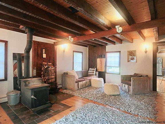 Steeped in local history, this vibrant farmhouse was once the general store that served the local bluestone miners, millworkers and farmers of Fishcreek. An inspired design with rustic details throughout, featuring an open floorpan on the lower level designed with entertaining in mind with large eat in kitchen with pantry opening to the living room with cozy wood stove and a quiet office tucked away. A fourth room upstairs can be used as a bedroom, walk in closet, yoga room or would make an amazing master bath. Located along the thread of the beautiful Plattekill Creek with a rustic barn and a level meadow below that would be amazing for a large garden. Highly convenient to Saugerties Village, Woodstock and Kingston.