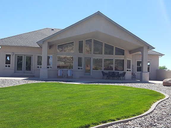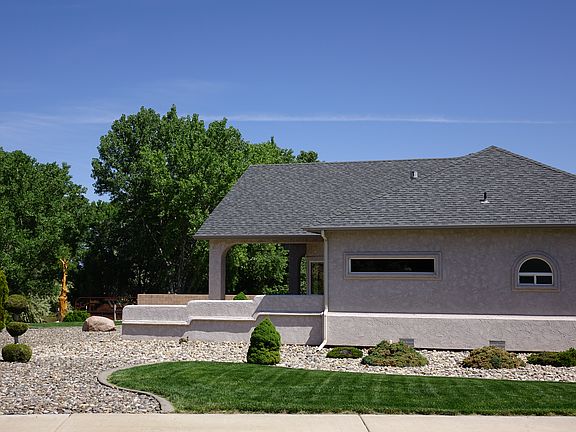 Custom built home located in Canyon View Subdivision. This original owner single level, 3 car garage home has an open floor plan with a split bedroom design. Situated on a very unique 0.42 acre corner lot. This home features 15 ft. vaulted ceilings in the main living area with floor to ceiling windows offering spectacular views of the Colorado National Monument. The great room has a marble trimmed two-sided gas fireplace, opens to a large kitchen which has granite counter tops, gas cook-top and built-in wall oven. Large master suite with 5 piece bath includes jetted tub and a huge walk-in shower. Refrigerated air conditioned with 2 heating systems, hot water and forced air. Beautifully landscaped with an easy care lawn and a 70 ft. patio that runs the entire length of home. Your view includes a neighboring pond with waterfall. Call 970 773-3785 for more info.
