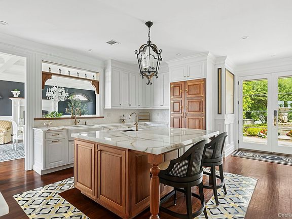 Immerse yourself in this stunning waterfront villa on Centre Island. Although newly rebuilt inside and out, the original character of this 1929 colonial creates an amazing synergy between modernity and history. Perched comfortably above the bay, the backyard slopes gracefully towards the water's edge with a new seawall. The professional landscape plan not only created beautiful grounds, but a number of entertaining and play areas, including a dining terrace with built-in barbeque/prep station. On the eastern side of the home, you are met by a sizeable driveway and a separate two car garage. Upon entering the front door, a beautiful onyx kitchen welcomes you. The charming dining room anchored by its fireplace, French doors face west, allowing you to take in the spectacular views. The cozy living room and its complementary fireplace. Through large French doors is an inviting covered terrace, making it the perfect place to entertain guests, or for intimate moments looking at sunsets over the bay. In addition to the stairs, all floors are accessible via a new elevator. The grand master bedroom comes complete with two large fully outfitted closets and a spa quality bathroom with unparalleled water views from shower and tub. A private balcony off the master offers the perfect place to enjoy a sunset or morning coffee. There are two additional bedrooms, a marble bath, and a small office on the second floor.
