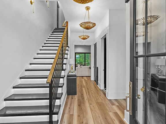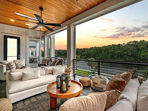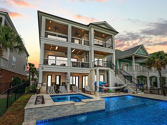 Not Your Average Waterway Home—This Custom Masterpiece Is a Showcase of Thoughtful Design and Exceptional Craftsmanship. Located in the gated community of Boardwalk on the Waterway, this custom-built 4-bedroom, 4-bathroom home is sleek, stylish, and simply stunning. Designed with a clean, contemporary aesthetic, this recently built residence (2023) showcases thoughtful craftsmanship at every turn—featuring 10' ceilings on the 1st and 3rd floors, an impressive 11' ceiling on the second floor, and 8' doors throughout, complemented by high-end custom millwork that adds timeless character and sophistication. Outdoor living is a true highlight, with spacious verandas on every level, including screened verandas on the 2nd and 3rd floors, and built-in Infratech ceiling heaters on the 1st and 2nd levels—making this home an entertainer’s dream and ideal for year-round enjoyment of the scenic Intracoastal Waterway. The ground floor offers dual 1-car extended depth garages—one is climate-controlled and the other with a custom-built storage room and tote racks—alongside a welcoming foyer with a custom drop zone, an entertainment area, and lounge with a full kitchen. Step outside to the covered porch with a fully equipped outdoor kitchen, and take in the show-stopping heated pool and spa with a natural gas fire bar, all overlooking the waterway. A 10,000 lb boat lift with water supply makes sunset cruises or weekend boating adventures effortless. On the main level, the open-concept living space flows seamlessly from one room to the next. The spacious living room features custom arched built-ins with fluted wood accents surrounding a 42" natural gas fireplace with fireballs and beautiful views of the waterway. Adjacent is a wine bar—perfect for entertaining—leading into the designer kitchen that includes: Custom cabinetry with ceiling height, glass-front upper cabinets, a leathered quartzite waterfall island, Built-in luxury ZLINE paneled appliances, a 60" refrigerator & a 48" dual-fuel natural gas range. Tucked just behind the kitchen is a fully outfitted scullery complete with a second dishwasher, refrigerator, convection microwave, full-size sink, and 30" dual-fuel range—providing effortless prep and cleanup space behind the scenes. Additionally, there is a guest bedroom and full bath, plus a dedicated office/playroom with floor-to-ceiling custom cabinetry and abundant natural light. One of the most impressive spaces is the second-floor screened veranda, complete with ceiling heaters, offering an expansive outdoor living room with breathtaking water views. The primary suite is a tranquil retreat with panoramic waterway views, three custom closets including dedicated shoe storage, and a luxurious en-suite bath with a soaking tub, large rain-head shower, dual vanities, and a private water closet. Upstairs also includes two additional spacious bedrooms, each with its own custom-designed closet and distinct charm. Additional features include Smart Home powered by Apple HomeKit, Built-in speaker system in living spaces, verandas, and lounge; USB/USB-C outlets throughout the home; low-voltage accent lighting in stairways, cabinets, and shelving, along with premium designer lighting and finishes throughout, in addition to custom cabinetry, drop zones, bunk beds, and millwork details throughout. There is an all-metal roof with 50-year warranty, spray foam insulation, spray foam insulation in exterior walls and roof deck with blown-in batten between floors and all interior walls, and black-on-black Andersen windows. This home combines modern luxury with the serenity of waterway living—an opportunity as rare as it is refined. Schedule your private tour today and experience this exceptional property for yourself.