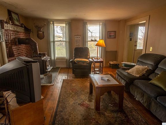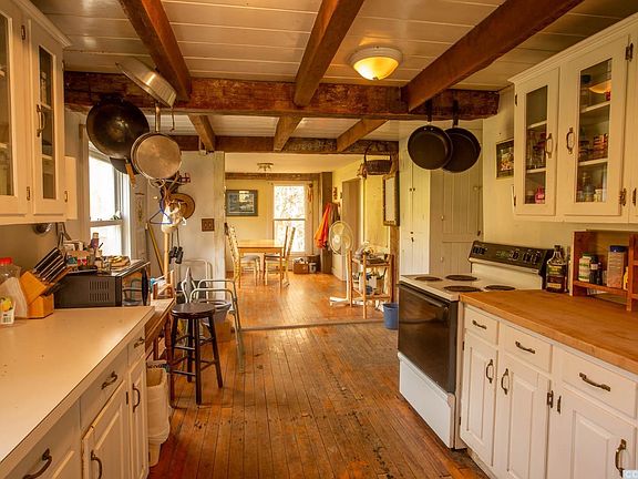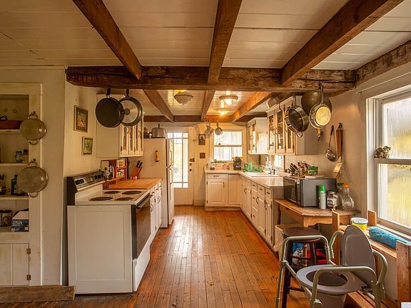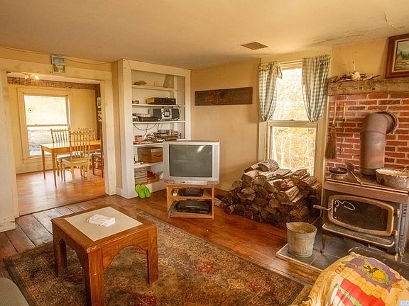 Classic farmhouse tucked away on 32 country acres, lush with multiple ponds, active wildlife and the remnants of an apple orchard waiting to bloom again. Original hardwood floors, exposed beams, kitchen built-ins and a warming living room brick wood stove are part of the first floor's antiquated charm. The upper level features three spacious bedrooms and a large bonus room in the bright finished attic. Includes a sizable barn with a hayloft and room to be stalled for equines, or a Gentleman's farm among the sprawling property.