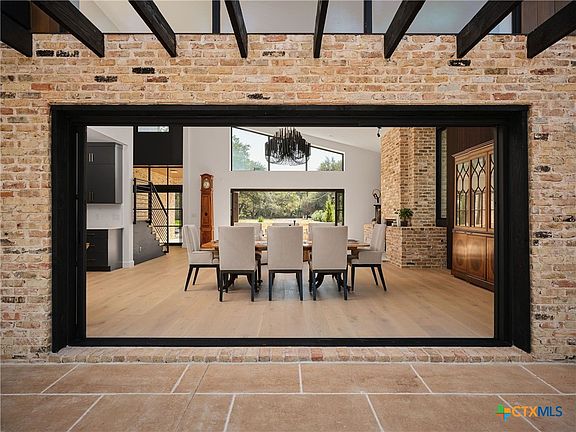 A residence of rare privilege, a fully reimagined modern estate offering the lifestyle every New Braunfels buyer dreams of with exclusive Island access to the Comal River, Keith Zars pool, pickleball court, rooftop entertaining terrace, and a catering kitchen built for unforgettable gatherings. Set on 1.37 oak studded acres in the prestigious “On the Hill” neighborhood, the home delivers 3,689 square feet where contemporary design meets timeless charm. A soaring main living area with walls of glass is anchored by a dramatic exposed brick fireplace, blending warmth with sophistication. At the heart of the home is a chef’s kitchen with quartz counters, gas cooktop, double ovens, dual dishwashers, and a walk-in pantry. A versatile glass-wrapped sunroom with its own sink offers flexibility for entertaining and hobbies. The primary suite is a true sanctuary with its own terrace, dual closets, a spa-inspired bath, and a private office complete with built-in bar and fridge. For effortless outdoor connection, the suite opens directly to the rooftop deck. Three additional bedrooms and a total of four laundry rooms ensure comfort and convenience for family and guests. Outdoors, the property unfolds as a private resort. A sparkling Keith Zars pool, pickleball court, and sweeping lawn provide recreation and relaxation in total privacy. What truly distinguishes this offering is its exclusive Island privilege. A private, resident-only access to the Comal River, sand volleyball courts, shaded picnic areas, diving boards, and private swimming zones. This amenity is reserved for only a select few and rarely available. With a two-car garage, circle driveway, and brand-new construction from top to bottom, The One On the Hill is as turnkey as it is extraordinary. All within moments of Landa Park, downtown New Braunfels, dining, and shopping. This is an opportunity to claim The One On the Hill—modern luxury, private river access, and a legacy address on Lakeview Boulevard.