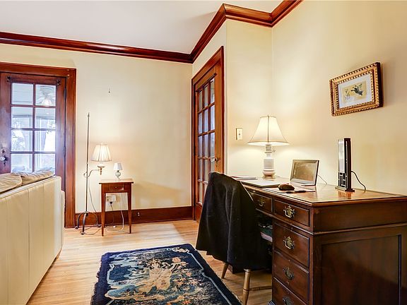 LOCATION, LOCATION! Located directly across from Ellison Park. Beautiful view of the park from the large enclosed porch. This house is filled with charm, gorgeous wood trim, leaded glass, hardwood floors. Nice bright eat in kitchen, large formal dining room with window seat, living room has fireplace flanked by beautiful leaded glass bookcases. French doors lead out to the spacious enclosed 3 season porch that you won't want to leave. Upstairs has 3 nice sized bedrooms, one bedroom has an enclosed porch where you can have your morning coffee or curl up with a book. Full walkup attic for great storage or expansion. Small deck overlooks fenced in area which is perfect for pets. Yard extends back of the garage with loads of room for parties or a pool. This house has all the charm of yesteryear. Offers are due 11/13 at 5pm