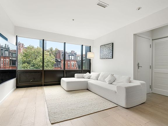 The Boston Globe said: It surprises, enchants, fascinates and mystifies......This Iconic Marlborough Glass House home comes to market for the first time in 40 years! This post modern marvel is a unicorn of a Back Bay property, which many admire and only few can call home. This offering encompasses the 3rd and 4th floors with South facing, oversized, wall to wall windows and views of Back Bay. The interior space has been renovated with contemporary flair to compliment the architectural significance of the building itself. On the entry level you will find a South facing living room highlighted by a gas fireplace and streaming with sunlight. Additionally there is a generous dining space and a voguish kitchen boasting custom lighting and beverage cooler. The spacious bedroom on this level has an en-suite bath and generous closets. Upstairs is the primary perch, full of windows and light and with a second full bath and custom glass doors. Central A/C and in unit washer/dryer. Pets welcome.
