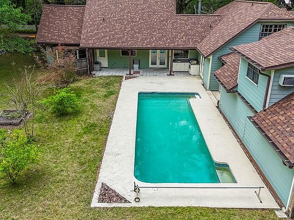 Two-story, Micanopy three bedroom + office, 3 bath home with 38' pool, outdoor kitchen, three car garage with man-cave. Oversized driveway. Well maintained. Built in 1985 with the addition in 1998. 2,680 heated sq. ft. Quartz countertops in spacious kitchen. Dining room opens out to pool area through French doors. Cypress beamed ceiling in living room with wood-burning stove. Large primary bedroom suite with window seat and huge walk-in closet. Covered front porch. Primary bathroom remodeled in 2023 New roof and gutters-2025. New pool pump & filtration system-2024. New living room carpet--2024. New water heater-2021. Swimming pool re-plastered-2018. HVAC system replaced-2017. Septic pumped-2021. Screened breezeway connect house to garage. The landscaped lot is 1.12 acres.