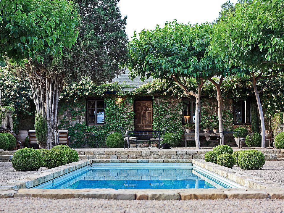 Provence in Ojai. Absolutely spectacular property with breathtaking pool and grounds designed by landscape architect, Paul Hendershot. 1.58 acres with orchards, a hand-cut stone walled courtyard surrounding a sparkling pool. 1930's stone house with a gorgeous kitchen, fireplace, and newer steel windows. This is a rare opportunity to own a special piece of Ojai history, improved with sensitive execution and European design sensibility. Perfect for a weekend getaway. Minutes to downtown Ojai.