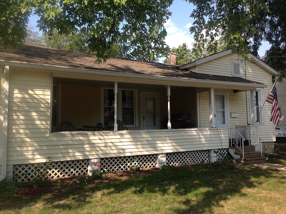 Large front porch to enjoy nice days and cool summer nights. Enter into extra large family , dining room combination. Freshly painted , lots of cabinetry in kitchen . Enjoy four good size bedrooms 2 with walk-in closets. New wood flooring in rear bedroom. New blown in insulation recently installed in attic. Tons of space for storage in the basement some shelving is already there for you. Brand new shed and fenced in yard professionally built. Newly remodeled porch with wood flooring! Large driveway for parking. All kitchen appliances stay! That's a fridge, built in microwave, stove and dishwasher!