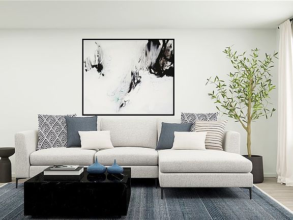 This single-level home showcases a spacious open floorplan shared between the kitchen, dining area and living room for easy entertaining during gatherings. An owner’s suite enjoys a private location in a rear corner of the home, complemented by an en-suite bathroom and walk-in closet. There are two secondary bedrooms along the side of the home, which are comfortable spaces for household members and overnight guests.