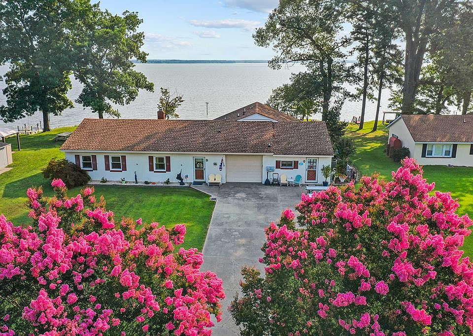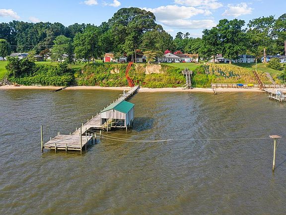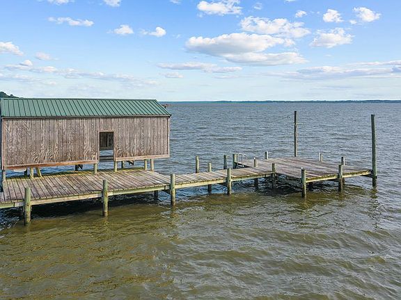 Classic river cottage overlooking the beautiful Rappahannock River; features sand beach, dock with rare boat house, boat lift; unique layout - house on left side (4 bedrooms), apartment on right side (1 bedroom); two kitchens; apartment has one full bathroom (not included in listing count); both offer great views of the River; renovated master bathroom; apartment offers extra rental income, overflow of house guests or you can escape the crowd in your own house and stay in the apartment! South Hill Banks offers a boat ramp, community beach and picnic area; short drive from Richmond - an hour or less