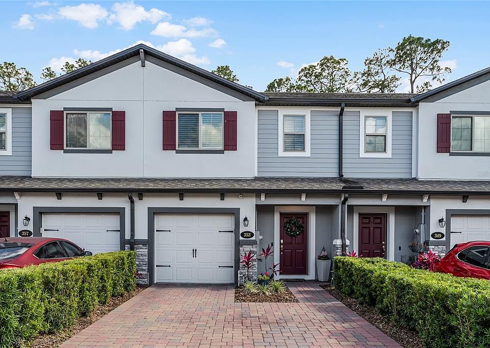 Come fall in love with this beautiful townhouse at the Towns at White Cedar. Built in 2020, this well-maintained, original-owner home is light, bright, and private, with a screened backyard lanai overlooking lush landscaping. The main living area features an open floor plan of kitchen, dining area, and living room. The well-appointed kitchen includes stainless steel appliances, granite counters, and stylish tile floors. The upstairs has a primary suite with a walk-in closet and spacious bathroom, two additional bedrooms with a shared bathroom, and a convenient loft area. Other notable features include custom barn-door laundry area, under stair storage closet with shelves, upgraded plumbing fixtures, gas range, designer ceiling fans, shutters, faux wood blinds, tankless hot water heater and a spotless garage with an epoxy non-skid floor and storage racks. Please call today to schedule a showing. Property may be under audio and video surveillance.