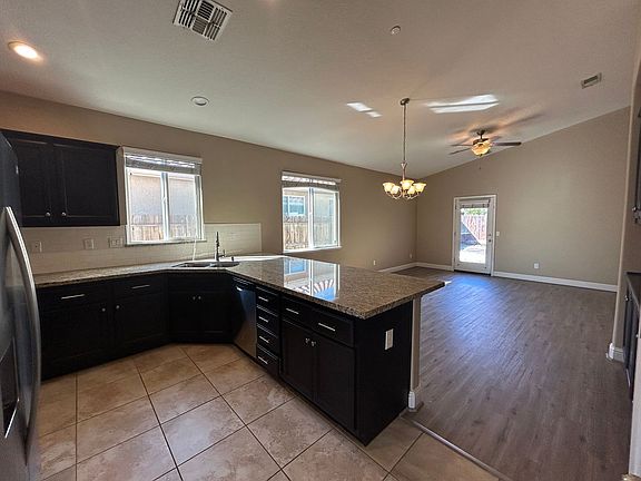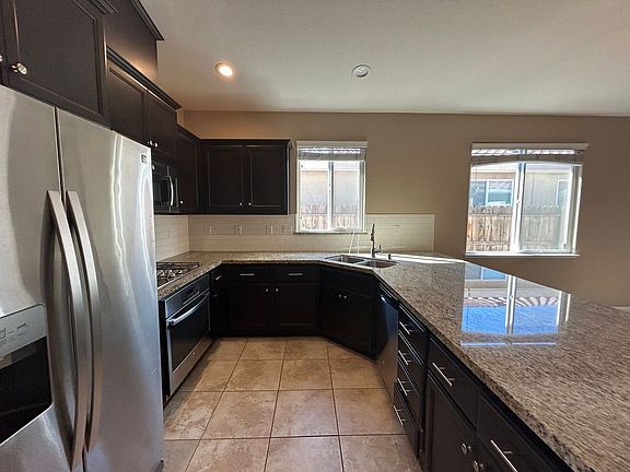 This single-family home in a cul-de-sac location was built in 2018 and has approximately 1633 square feet with a living room, NEW laminate flooring, tile flooring, carpet in bedrooms, blinds, granite counters, gas range and oven, dishwasher, microwave, refrigerator, garbage disposal, laundry room w/washer & dryer, central heating & air conditioning, ceilings fans, two-car garage w/ electric opener, front yard w/automatic sprinklers, low maintenance backyard. Close to schools, parks, and shopping. Take G St, Turn left onto W El Portal Dr, Turn left onto Campus Drive, Turn left onto Stannous Court. One Year Lease Required. Renter's Insurance Required. No Pets. Refrigerator, washer, and dryer are provided without warranty of repair or replacement. Renter's Insurance Required. Zillow rental applications are not accepted.