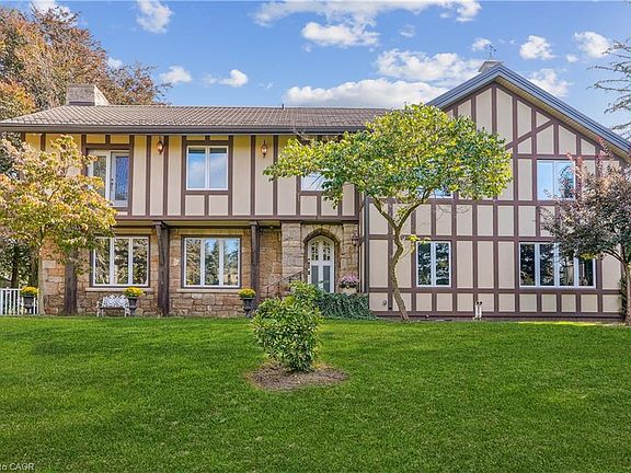 Step into history reimagined with this breathtaking 1870 estate, meticulously restored to blend timeless heritage with modern luxury. Set on over 5.5 rolling acres in Ancaster’s most coveted enclave overlooking the Dundas Valley, this home is a rare offering of elegance, craftsmanship, and comfort. Every detail has been carefully considered in the extensive restoration. Heritage features shine throughout, seamlessly complemented by modern updates: renovated kitchen and baths, new windows, plumbing, electrical, HVAC, generator, steel roof, and spray foam insulation. Fresh exterior stucco and advanced energy efficiencies ensure the home is as practical as it is beautiful. The dramatic foyer, with its lavish woodwork and sweeping staircase, makes an unforgettable first impression. The expansive living room is anchored by a towering stone fireplace, while the main floor also boasts a private office, formal dining room, two stylish washrooms, walk-in pantry, and a gourmet eat-in kitchen opening to a covered stone patio. Upstairs, accessible by both the grand staircase and a new elevator, you’ll find a spacious hallway leading to five bedrooms, three baths, and a convenient laundry. Two bedrooms include ensuites, with the sprawling primary suite offering a true retreat. The third floor, also served by the elevator, is ideal for an in-law suite with rough-ins for a kitchen and bath. A finished basement with two bedrooms and its own entrance provides yet another suite opportunity. Outside, the acreage unfolds in serene privacy. A pool awaits reactivation at the back of the property, while a detached stone garage and barn/workshop offer endless possibilities for hobbies, storage, or creative ventures. This remarkable estate pairs historic character with modern convenience, all set in one of Ancaster’s most desirable pockets. It is more than a home—it’s a lifestyle.