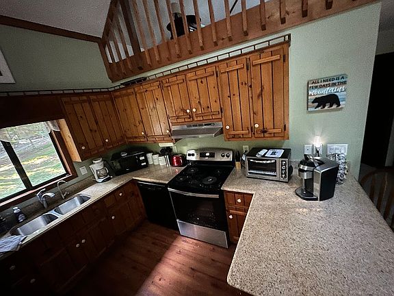 WELCOME HOME! Rustic cabin style home w/ 2 driveways to 1-car garage/ basement. Partial wrap around deck & SKYLIGHTS throughout this unique home! Wood burning stove in an OPEN floor plan. GRANITE countertops & gorgeous pine kitchen cabinets. Two bedrms on main floor w/bthrm. Loft w/bthrm upstairs- use as a bedrm or ofc space. Partially finished basement w/LOTS of storage. Reverse osmosis filter system. Underground utilities. Partial smart home. (Must be w/Agent or owner to see home.)
