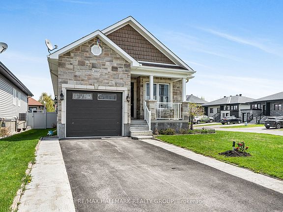 Welcome to 353 Trillium Circle. Built in 2017, this luxurious custom 3 bedroom, 3 bathroom 1,263 sqft detached bungalow with single car garage is located on an oversize lot (frontage: 40.48ft x depth: 106.28ft) in a family oriented street in Wendover while being 10 minutes from Rockland & ONLY 30 minutes from Ottawa. Situated on a prime corner lot, this home is just steps away from parks, an outdoor rink, and within walking distance to local restaurants and a pharmacy. The main level features 9-foot ceilings and a custom kitchen with granite countertops, creating a warm and inviting space for entertaining. The spacious primary suite includes a luxurious ensuite with a soaker tub and walk-in shower, providing a tranquil escape. The fully finished basement is perfectly suited for a mother-in-law suite or adult child accommodation, boasting a bedroom, full bathroom, kitchenette and a cozy natural gas fireplace -the ideal setup for privacy and comfort. Outside, enjoy the covered porch overlooking a fully fenced yard with ample space to park a small RV or car. BOOK YOUR PRIVATE SHOWING TODAY!!!