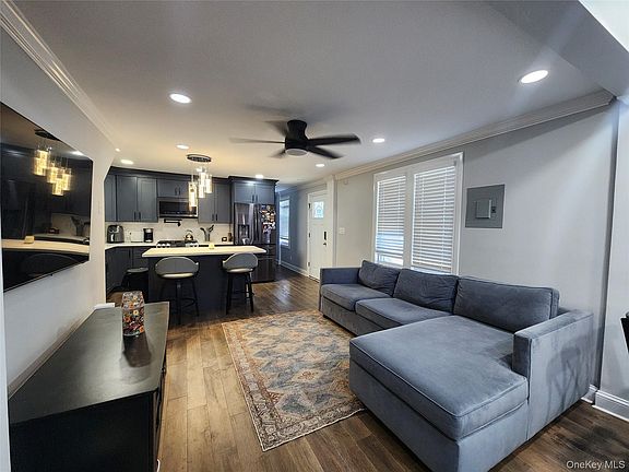 Beautiful detached two-family home in the Clason point area of The Bronx that offers space, comfort, and convenience. The top floor features three bedrooms and one bath with a kitchen that boasts SS appliances, cherry wood cabinets, marble countertops, tiled floors, along with hardwood flooring throughout . The first floor has been tastefully renovated and includes three bedrooms, two modern bathrooms with pocket doors (one in the primary bedroom), hallway bathroom has a Bluetooth speaker, and a stylish kitchen with SS appliances, gray cabinets, quartz countertops, an island, kettle faucet (pot filler) and tiled floors, complemented by hardwood flooring throughout. This apartment is enhanced with a walkin closet in the primary bedroom, closet farm doors, skylight, recessed lighting, and has both a front entrance and a side entrance leading directly to the yard. The fully finished basement is tiled throughout with baseboard heating, a summer kitchen, full bath, recreational area, two additional rooms, and a convenient side walk-out. Additional highlights include a recently updated siding (2022), new gas lines for entire house (2023), first floor new windows (2023), New water tank (2023), new water meter (2023), a full camera security system, and a spacious cemented backyard with a tool shed. A five minute walk to the ferry and the BX27 and BX39. Will be delivered VACANT.
