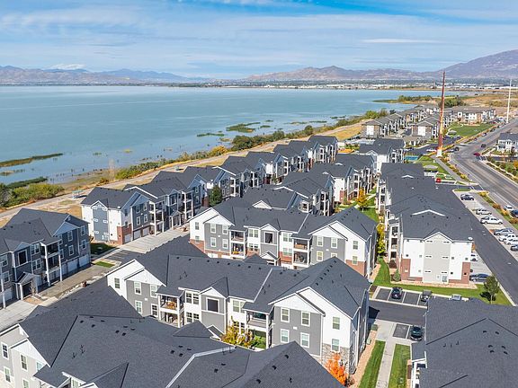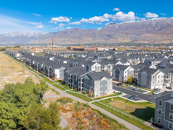 Step into this meticulously maintained and thoughtfully upgraded 3 bed, 2 bath condo located in the popular Lakefront Community! This single-owner unit has never been rented, and is completely smoke- and pet-free. Located on the top floor, it offers peace and quiet with no neighbors above and a non-street-facing position for added privacy. Large south-facing windows provide abundant natural light year-round. The home is filled with premium features, including vaulted ceilings in the living room and master bedroom, 9' ceilings throughout, brushed nickel fixtures, and built-in shelving in closets and the pantry for optimal storage. The kitchen features a tiled backsplash, quartz countertops, a touchless faucet and under-cabinet lighting. Additional highlights include a tankless water heater, cabinets in the spacious laundry room, ceiling fans, and a large covered patio with views of Utah lake. The garage floor has been professionally epoxied for enhanced durability and easy maintenance. The Lakefront Community offers miles of walking and biking trails, a large clubhouse with a gym and pool on the lake, pickleball and basketball courts, a large dog park, and playgrounds. With three large parks within walking distance, easy access to I-15 and FrontRunner, this home is centrally located in Utah County, offering both convenience and active living. Square footage figures are provided as a courtesy estimate only and were obtained from County Records . Buyer is advised to obtain an independent measurement.