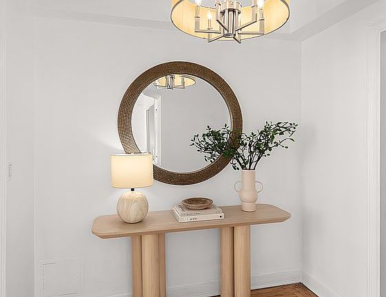 The spacious entry foyer welcomes you with a large double-depth walk-in closet and offers the perfect area for a home office or writing desk. Beyond, the main living space is filled with natural light from four original casement windows facing south and east, offering excellent flexibility with room for a dedicated sleeping area without compromising your entertaining space. An oversized secondary closet can easily accommodate a Murphy bed or additional shelving.
