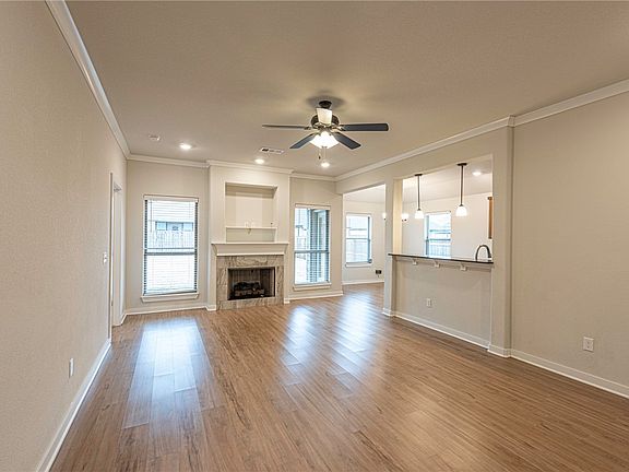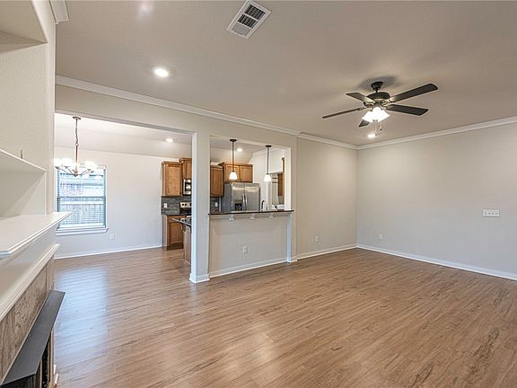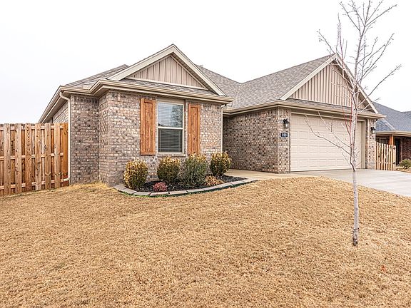 WELCOME HOME! Built in 2022, this 3 bedroom 2 bathroom home is located near schools, shopping, eateries, and minutes away from I-49 and the University of Arkansas! From the porch head inside into an open-concept living room featuring 9ft ceilings, upgraded luxury vinyl plank floors throughout the main living space, a gas log fireplace, and Crown Molding details! Flow into the eat-in dining room and galley kitchen featuring: granite counters, upgraded single basin sink, upgraded tile backsplash, stainless steel appliances, ample cabinet space, and counter height peninsula! The laundry room includes an upgrade for cabinet storage and a drying rod! Relax and rejuvenate in the primary bedroom with a private ensuite feat: double sink vanity, whirlpool tub combo, and two walk-in closets! Enjoy two additional bedrooms and one additional bathroom! Out back enjoy the covered back patio and fully fenced back lawn perfect for the upcoming spring and summer months! *All appliances convey!!* Don’t Miss Out! Act Now!