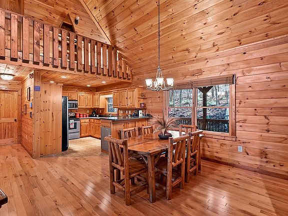 Finally, a reasonably price, furnished cabin in the beautiful mountains of north Georgia. End of road privacy with pavement all the way to the door. This three bedroom, three bath beauty is a one owner home that has never been in a rental program. As you enter, the cathedral ceilings and towering windows allow natural light to bathe the lovingly preserved wood flooring. Spread across three floors, the main level features a spacious bedroom with double doors leading onto a covered deck surrounded by gorgeous foliage. A bath with laundry closet, kitchen, dining area and great room complete this level. The main porch features a screened area with stacked stone fireplace, great for gathering around the fire on chilly evenings or on moonlit spring/summer nights. With three quarters of the porch covered, there's ample outdoor space to accommodate large gatherings of friends and family. The primary bedroom is upstairs and features more cathedral ceilings and a wall of windows. Take in the view from your private deck just off this bedroom. There is an oversized closet, jacuzzi tub and separate shower in the private, well-appointed bathroom. The terrace level features a large, inviting space great for a game room, tv room or both! There also is a third bedroom and bathroom here. Outside is another spacious deck with a large hot tub - perfect for relaxing after a day of walking the trails, horseback riding, zip lining, fishing, rafting, winery hopping or shopping in downtown Blue Ridge. This is just what the doctor ordered! Great place for second home living or as a rental investment. Plenty of parking for multiple vehicles.