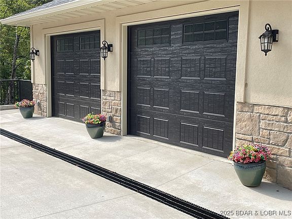 Motivated Sellers! Solar Efficient Lake Home with energy bill averaging $117 per month! You don't want to miss this exclusive lakefront home with dock in Linn Creek Cove, MM31, Lake of the Ozarks. This custom furnished home has a 2023 new build with a 2010 fully renovated wing located in the established quiet Cross Creek neighborhood, sitting on 1.74 acres, has a fabulous lakefront view & 621 feet of lake frontage. The home boasts 5670 sq. ft. of interior living space, 4 car garage bays with oversized garage area, & additional parking on the wide, gentle sloped concrete driveway. The main interior floor offers open floor living, vaulted ceiling, stacked stone gas fireplace, chef's kitchen & dining room with hardwood floors. It features a great room, 2 master ensuites, 2 add'l beds, add'l 1.5 baths, & laundry. Lower level boasts 2 family rooms, 5 beds, 3 baths, bar room, & dining area. Within a few steps or by cart path, enjoy your hot tub, wet bar, sitting area, game area, & lakeside firepit. A concrete dock with 2 boat slips, double PWC slip, swim platform, dock bar, & storage area completes the package. A perfect home to enjoy year-round or seasonal with your family and friends!