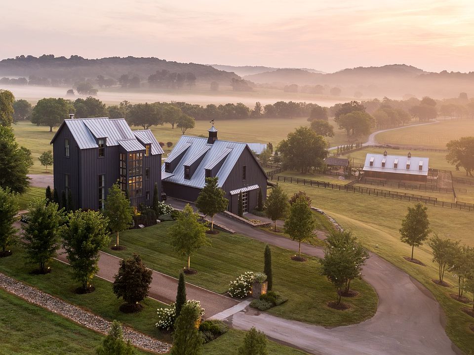 Nestled just two miles from the heart of historic Leiper’s Fork, Little Fawn Farm encompasses 97 acres of exquisitely maintained countryside along one of Middle Tennessee’s most prestigious roads. A grand entry gate sets the tone, welcoming visitors into a property defined by meticulous attention to detail and timeless Southern charm. As you wind down the long drive, passing a tranquil pond with a fountain, you’re enveloped by sweeping views of rolling pastures and wooded ridges. The main residence, a charming three-bedroom home designed to capture natural light, sits perfectly elevated to take in the scenic vistas. The entire third floor is dedicated to a luxurious primary suite offering unobstructed views for miles. Entertaining is effortless here, thanks to a stunning 35x40 party barn. Once a working barn, it’s been transformed into an entertainer’s paradise featuring multiple sitting areas, TVs for game days, a loft area, half bath, and kitchen. Glass bay doors open wide to let in the crisp Tennessee air, while a covered porch overlooks the new horse barn and beautifully fenced pastures. An inviting firepit and newly installed outdoor kitchen complete the barn’s alfresco offerings. For equestrian enthusiasts, the horse barn surpasses expectations with custom-built 14x14 stalls, indoor and outdoor wash bays, office, and a well-appointed tack room. Additional structures include a dedicated donkey barn, a spacious 30x50 detached four-bay garage ideal for a car collection, small barn with half bath and a workshop garage. The estate’s grounds boast natural water features like a spring-fed, stocked pond and a stunning swimming hole with stone coping, a waterfront fire pit and graceful waterfalls. The property enjoys frontage on Murfrees Creek for fishing, while deer and wild turkey are bountiful for the outdoor enthusiasts. Little Fawn Farm offers ample opportunities for expansion with an approved 12-bedroom perk site and three additional build sites.