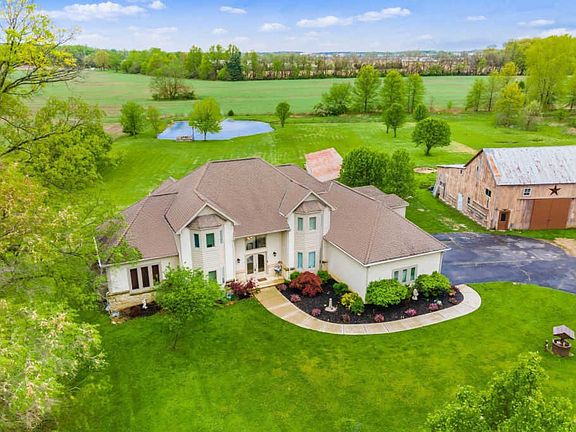 Beautiful, move-in ready home on 5 acres w/a pond! This home includes a barn, 5 bay tractor shed and 30 x 60 pole barn. Relax by the fireplace in the vaulted great room overlooking the backyard. Bright eat-in kitchen features SS appliances, and plenty of cabinet and counter space. First floor offers a bedroom/work-from-home office, formal living room, dining room and laundry room. Vaulted owner suite w/ attached private bath features a soaking tub, double sink vanity and walk-in closet. 3 additional bedrooms, a full bathroom and flex/bonus space complete the upper level. The finished lower level is perfect for entertaining - Including a workout room, office/multi-purpose and plenty of storage space! Enjoy summertime from the deck or patio overlooking the backyard oasis!