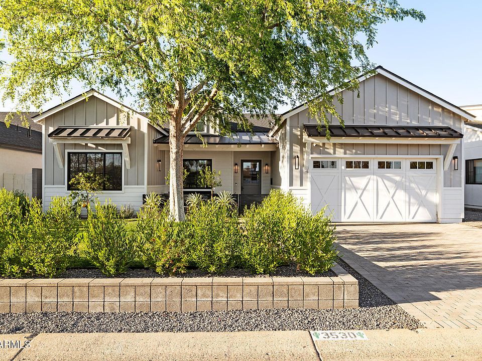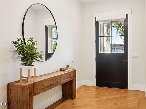 Step into luxury where modern elegance combined with farmhouse charm makes home sweet stylish home! This stunning home features a private pool, outdoor kitchen, and sauna—perfect for relaxation and entertaining. Designed with impeccable craftsmanship, the open floor plan is bathed in natural light, highlighting soaring vaulted ceilings with stained beams, European White Oak floors, and a striking marble fireplace. The chef's kitchen is a showstopper with beautiful cabinetry, top-tier appliances, and butler's pantry. The master suite is a serene retreat with dual walk-in closets, a second laundry, and dedicated patio with breathtaking Camelback views.