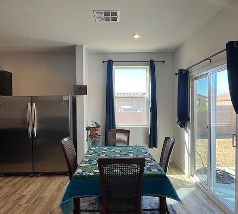 Welcome to your future oasis in the sought-after Tesora community of Pahrump! This charming home sits proudly on a spacious 9,148 sq ft corner lot, offering privacy and room to breathe. With two bedrooms plus a versatile den, the open-concept layout flows effortlessly into a generous kitchen—perfect for entertaining or quiet evenings in. Step outside to a full-length cement patio, ideal for outdoor dining or lounging, and a backyard thoughtfully finished with gravel, ready for your personal touch—whether it's a garden, fire pit, or play area. This property is a blank canvas with all the right foundations to create your dream retreat.