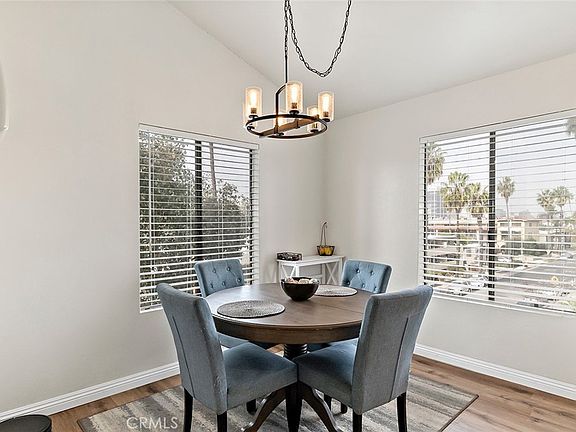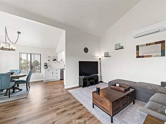 Welcome to this bright and airy, beautifully updated top-floor corner unit condo in Bixby Knolls! This 2-bedroom, 2-bathroom home has 1136 square feet of comfortable and well-designed living space. With numerous upgrades completed in 2020, this unit is turnkey and move-in ready. Just past the entryway, you’ll find the beautifully appointed built-in wet bar with granite counter, bar sink and ample cabinet storage. The living room has vaulted ceilings and a three-panel glass sliding door to the outside balcony, enhancing the open and spacious feel. Gorgeous wood flooring blends the living area seamlessly with the dining area and galley kitchen with redone electrical including new panel. The stainless steel refrigerator and stove are included, along with a built-in dishwasher and microwave. The combination washer/dryer unit conserves space while offering the convenience of in-unit laundry. (Plus, the building also has a community laundry area.) The primary bedroom has a remodeled en suite three-quarter bath with dual sinks and newer tile flooring. Across the hall you’ll find the second bedroom and another full bathroom. The original heating system has been upgraded to a mini-split style HVAC for heating and cooling with a unit in each room. Along with ceiling fans in both bedrooms, you can maintain a comfortable temperature year-round. Smart switches for lighting are also installed throughout the unit. The secure building has a lovely inside courtyard and patio area with grills and picnic tables for resident use. This unit comes with 2 assigned parking spaces in the shared garage. The building is in a great area of Bixby Knolls, walking distance to shopping and restaurants, and with easy access to freeways.
