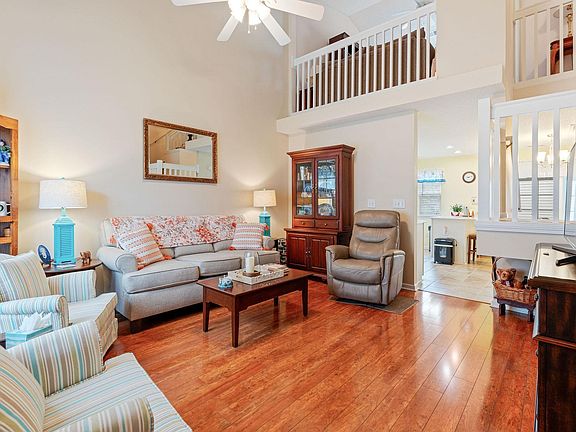 Delightful, MOVE IN READY end unit located in the desirable Windsor Gate community at Market Common. This open and airy home has been well-maintained and never rented. Living room features vaulted ceilings and hardwood-look laminate flooring. Kitchen includes new quartz countertops, ceramic tile flooring, and white appliances with a French door refrigerator (2 years old). Dining area opens to an EZE Breeze sunroom with access to a private patio. First-floor primary suite includes two closets and a bath with double vanity. Upstairs you will find a large loft-style bedroom with two closets and adjoining bath with double vanity, tile floor, and an upgraded tile shower. A third bedroom overlooks the pond across the street. Brand new luxury vinyl plank flooring was recently installed on the second floor. Additional features: built-in surge protection, roof replaced in 2022, and a one-year Choice Home Warranty. HOA dues include exterior maintenance/insurance, landscaping, water, trash, and community pool. Conveniently located within walking distance to shopping, dining, and entertainment, and just one mile to the beach. With community-wide aesthetic improvements in the planning stages, residents can look forward to enhanced curb appeal and long-term value appreciation. All measurements are approximate and not guaranteed. Buyer is responsible for verification.